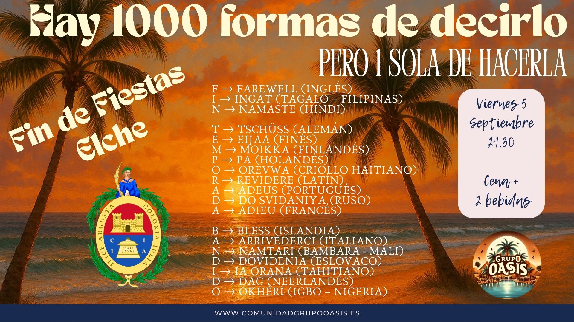 Título: Bandido Fin Fiestas Fecha: Vie. 05/09 – Hora 21:30h Plazas: 100 Plazas Niños: No